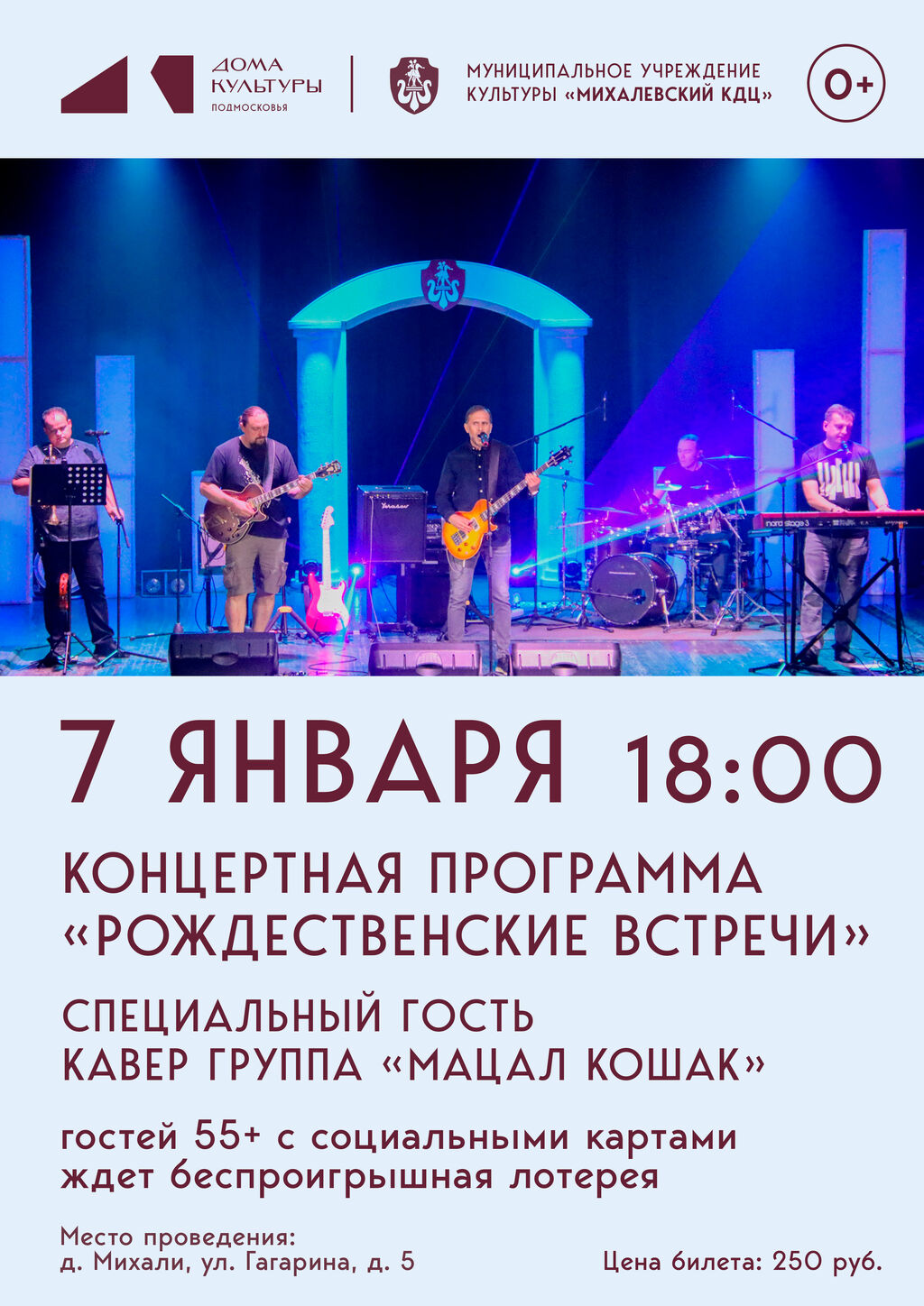Дорогие друзья! С радостью приглашаем вас встретить Рождество вместе с нами! «Рождественские встречи» — это особенное событие, где вы сможете отпраздновать радость этого волшебного времени года в компании творческих коллективов. Михалевский КДЦ подготовил для Вас незабываемую программу, которая подарит вам море радости и волшебных моментов. Вас ждут концертные номера от творческих коллективов, рождественские гадания, традиционный розыгрыш подарков и специальный гость — кавер-группа «Мацал Кошак». Равнодушным никто не останется!