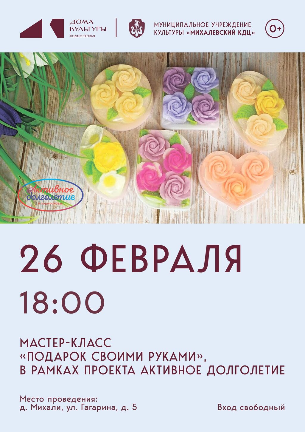 Откройте для себя увлекательное хобби и создайте что‑то своими руками! Приглашаем на мастер‑класс по мыловарению для людей 55 лет и старше.